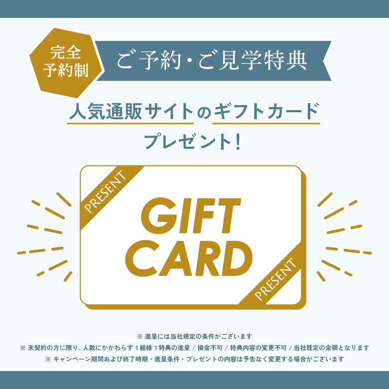 (※未契約者様限定 / 人数にかかわらず1組様1特典の進呈 / 換金不可 / 特典内容の変更不可 / キャンペーン期間および特典内容は予告なく変更・終了する場合がございます)