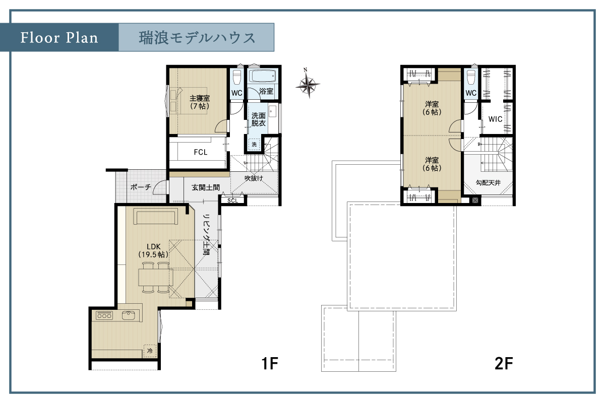 1F床面積 / 81.38㎡(24.65坪) 2F床面積 / 37.68㎡(11.41坪) 延床面積 / 119.06㎡(36.06坪) |
